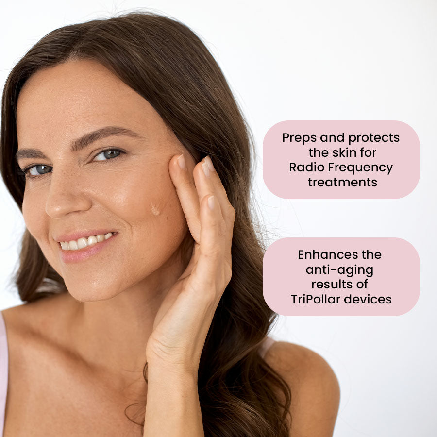 The Preparation Gel is an essential step in your TriPollar RF treatment, providing the skin with a layer of protection from the heat transferred by your device. Using a TriPollar device without the Preparation Gel could burn or damage the skin. It also enhances results and allows for the perfect amount of slip throughout treatment, so it’s recommended to always have one in your skincare cabinet.