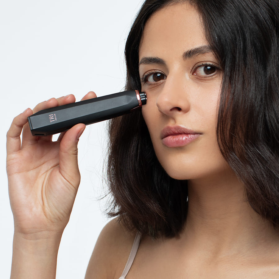 The technologies in STOP MIRACLE YOUNG are designed to deliver a focused treatment to delicate facial areas only, such as the periorbital, perioral and nasolabial folds – otherwise known as the eye contour and mouth area. They should not be used on eyelids or closed eyes. For skin-rejuvenation treatments that target the forehead, cheeks and jawline, look to other TriPollar devices.